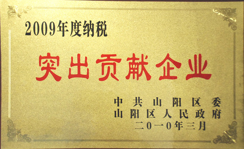 3月10日,山陽區(qū)召開經(jīng)濟(jì)工作會(huì)議暨年度表彰會(huì)。山陽區(qū)委、區(qū)政府授予我公司“科技創(chuàng)新獎(jiǎng)”和“納稅突出貢獻(xiàn)企業(yè)”兩項(xiàng)殊榮。2009年,我公司實(shí)現(xiàn)稅金1918.3萬元,在山陽區(qū)名列前茅。