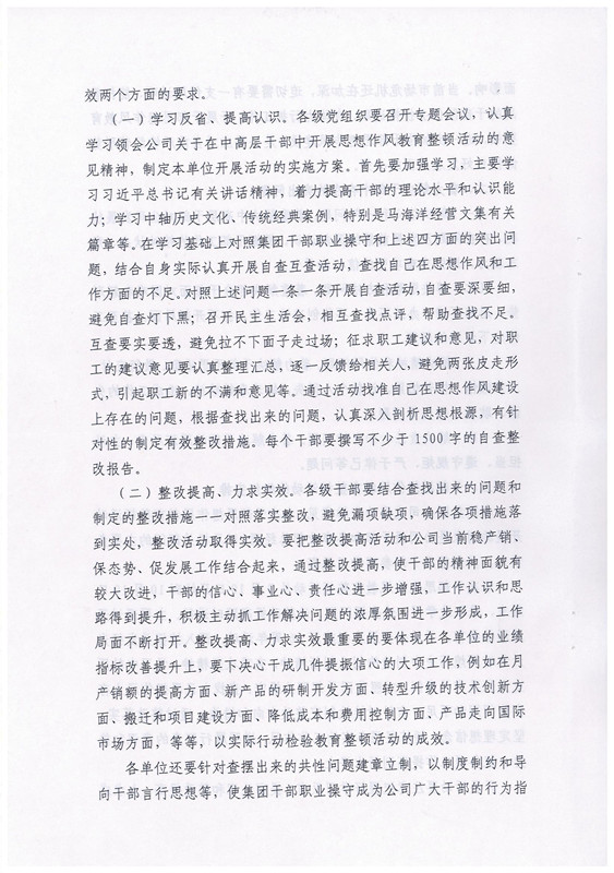 關(guān)于在中高層干部中開展思想作風(fēng)教育整頓活動(dòng)的意見